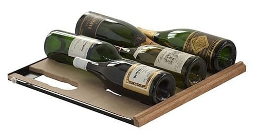 Espace racks glide smoothly in and out on rollers and can be used in either of two ways – as a sliding rack for one layer of bottles or as a storage rack for up to 44 bottles on 4 layers. When used as a storage rack, the rack can be locked in position by sliding the mechanism at the rear of the shelf. Each rack has a front profile label holder to label the contents of each shelf.